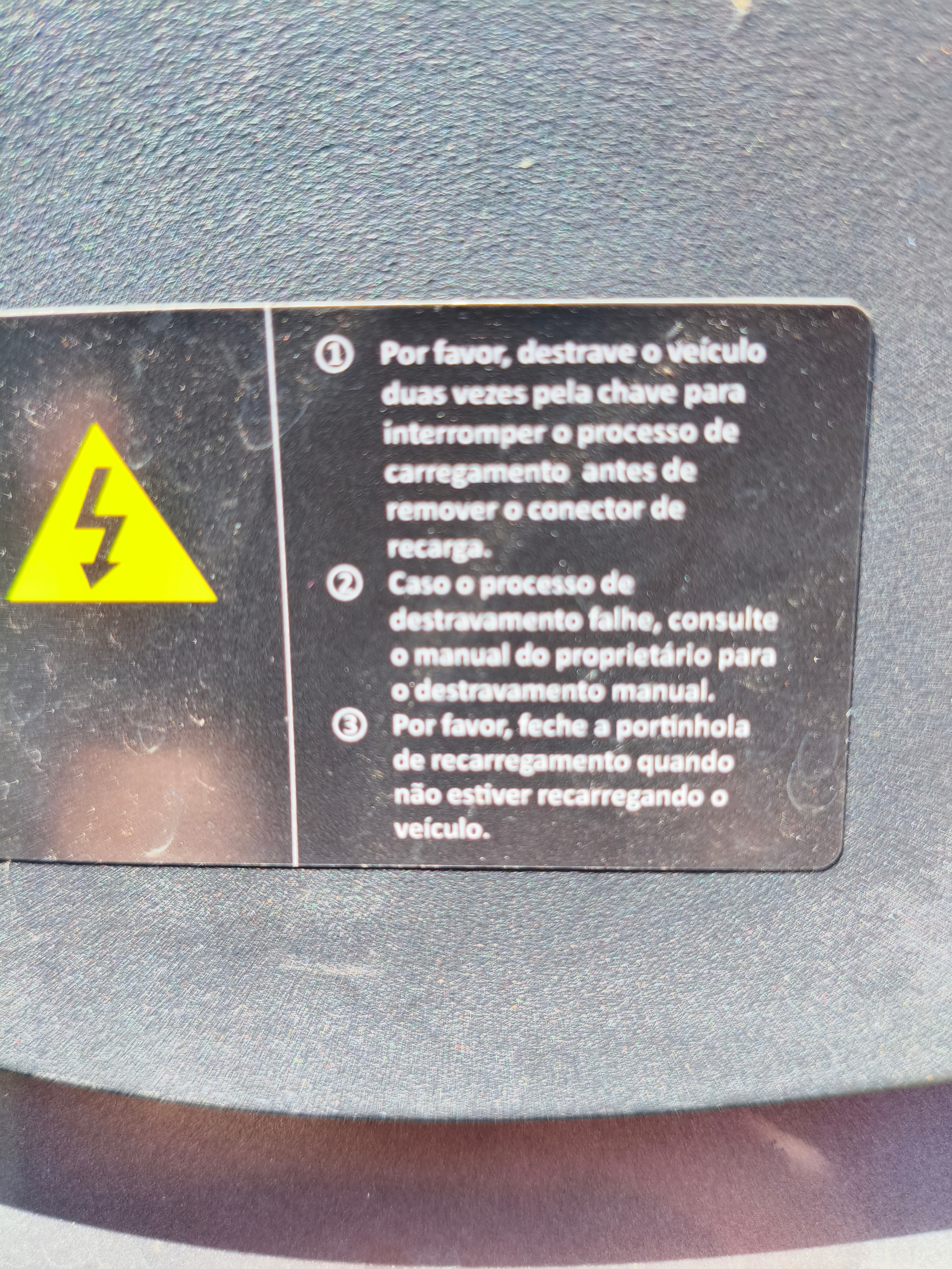 Coloquei o carro em 52% para carregar no wallbox doméstico (triangular) e horas depois não carregou, apresentando a exata mesma falha (check OBC system). Quando fui colocar o carregador percebi que estava com o pino.