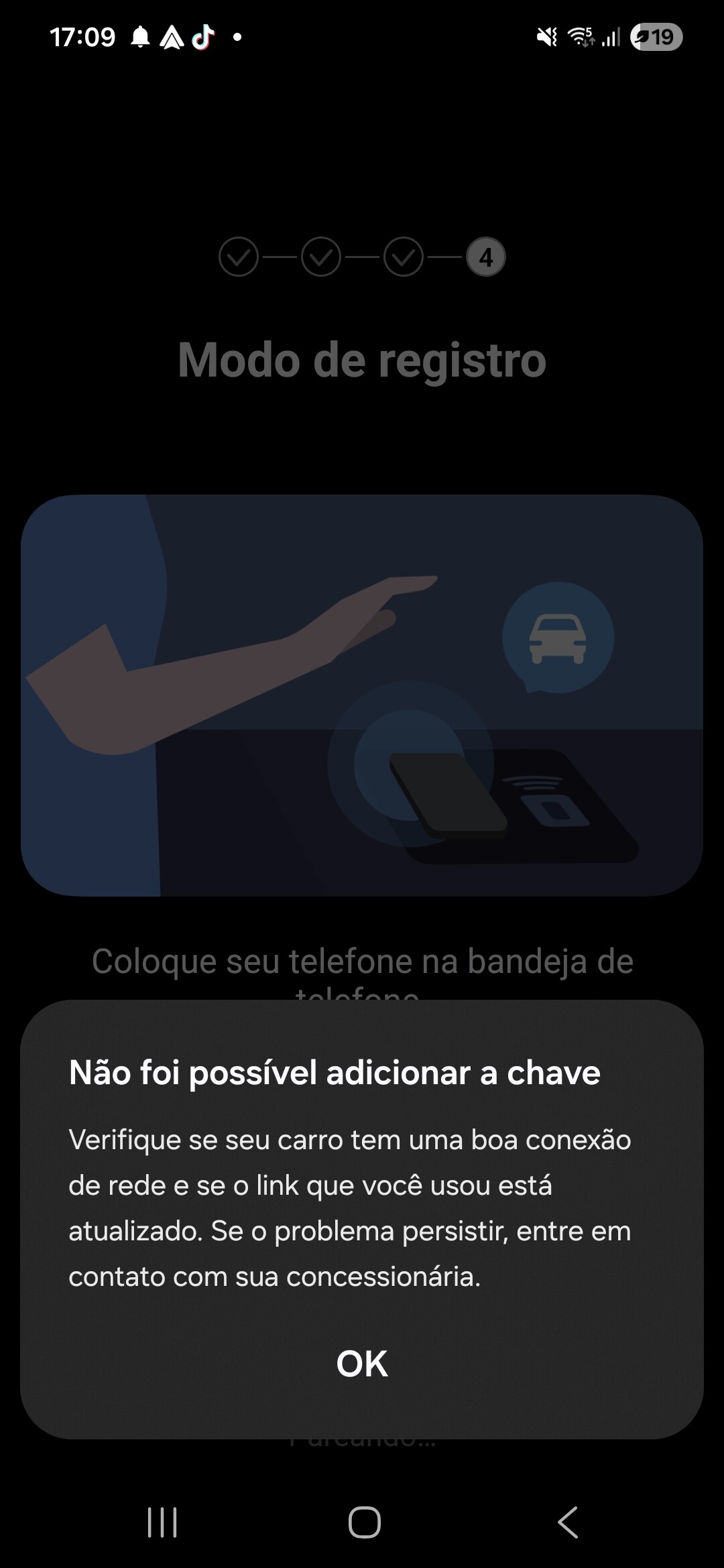 Eu tenho um Dolphin GS e hoje minha esposa ao usar o carro me falou que tinha uma mensagem diferente, eu examinei a central e nao vi diferença. Ao ver este post, fui no carro e sim, tem a opção de chave digital. Tenho um S24 Ultra e o procedimento ocorre normalmente, pede a senha enviada por email, mas no final da erro. Já também recebi um monte de emails com a mesma senha.
