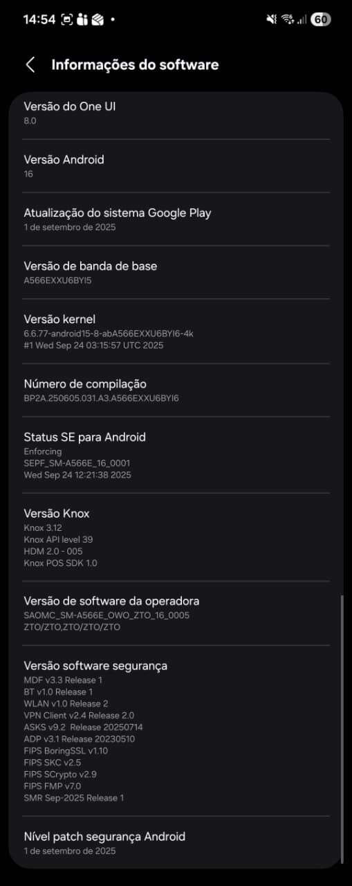 Confirma tbm dentro das configurações do celular, sobre o telefone, informações de software os dois itens abaixo: