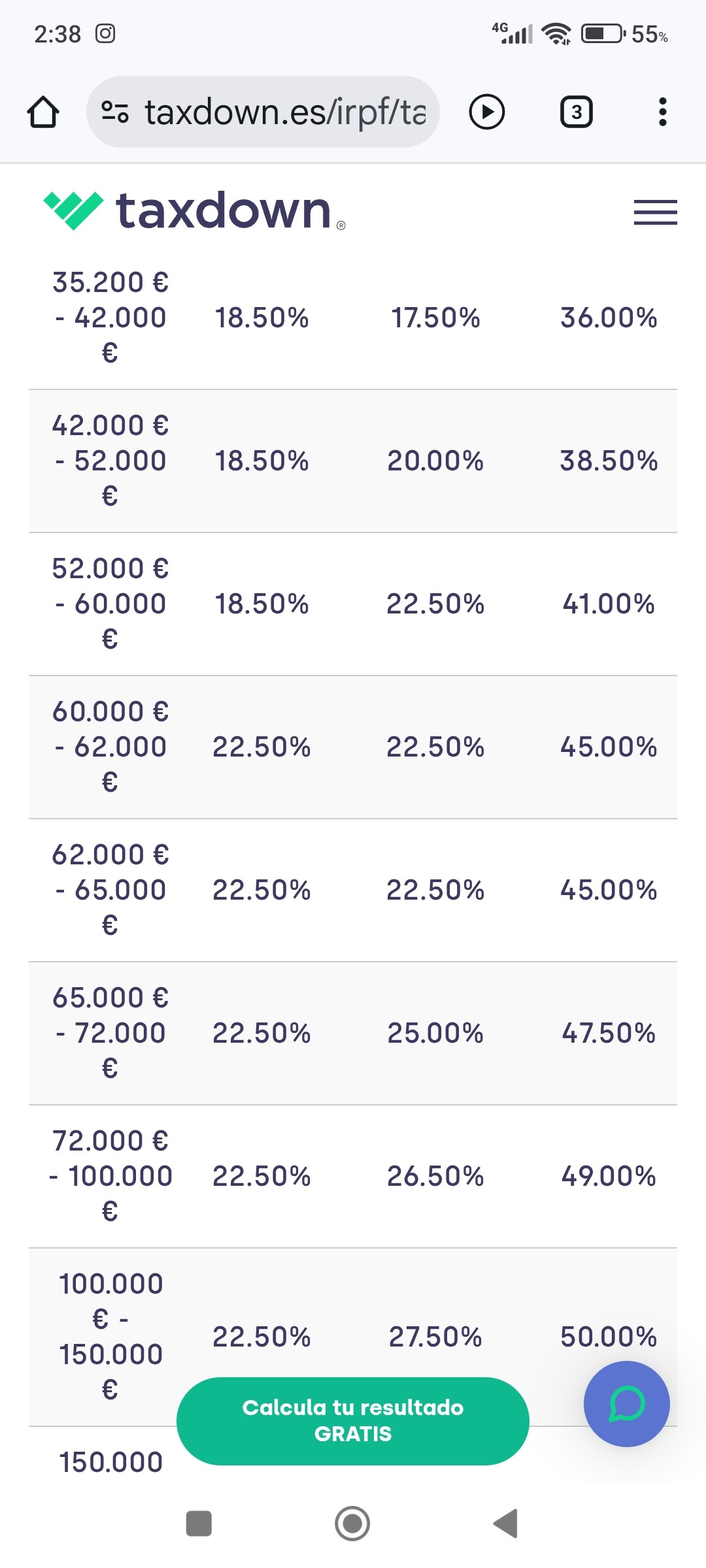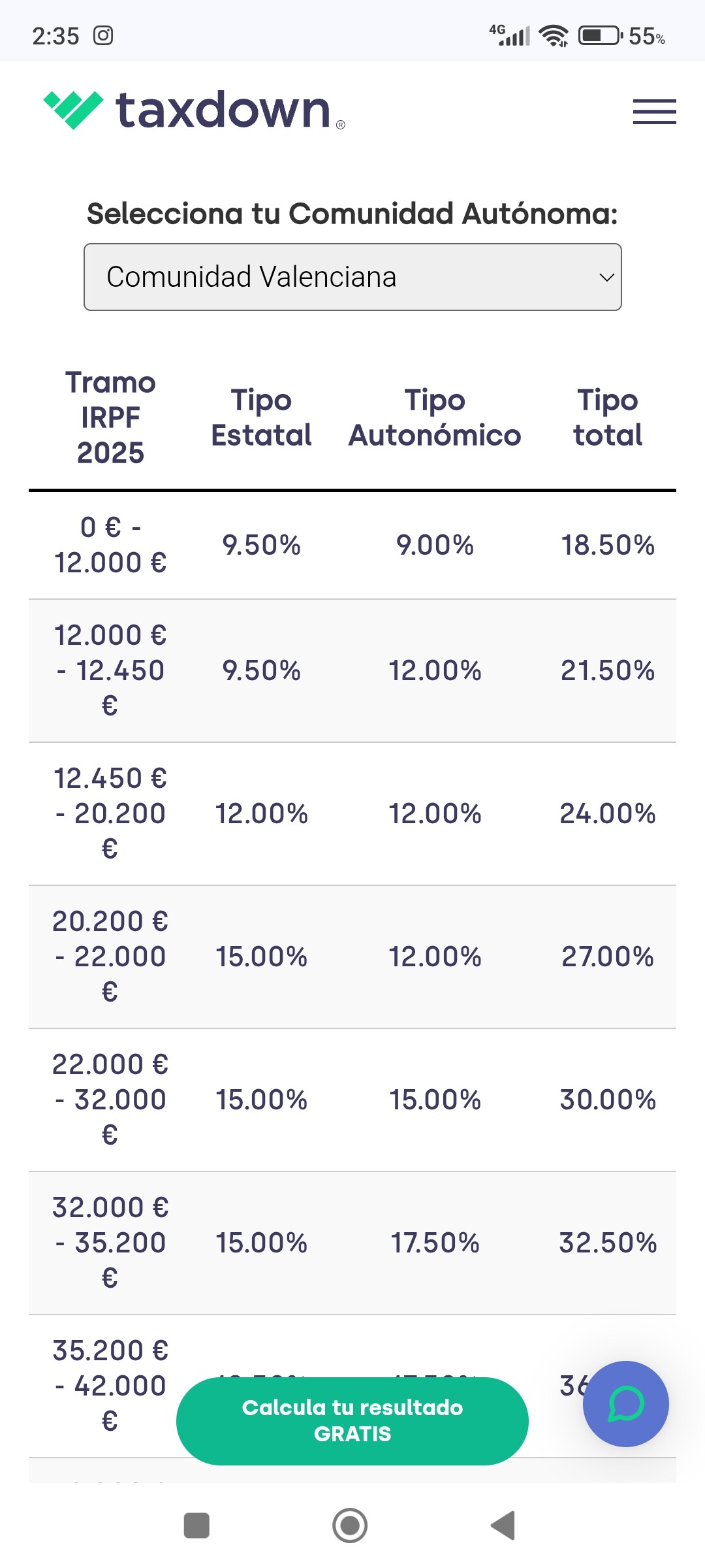 O texto diz: “A alíquota de IRPF na Comunidade Valenciana é de 50% para esse valor”.