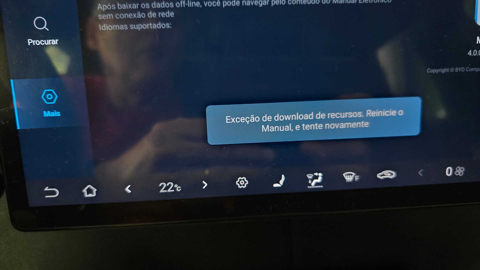 Sempre é exibida a mensagem “Exceção de download de recursos. Reinicie o Manual e tente novamente.”