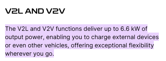 Algum motivo para V2L não ter a mesma potencia de saída que de entrada a não ser alguma restrição para segurança do consumidor? (Aquele que precisa dizer no manual que liquido de freio não se bebe) ![]()