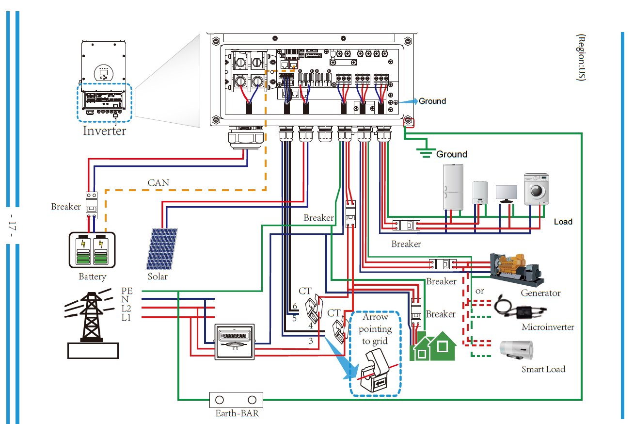 Esquema de ligação dos inversores Deye 127V. Só tem Bifase.