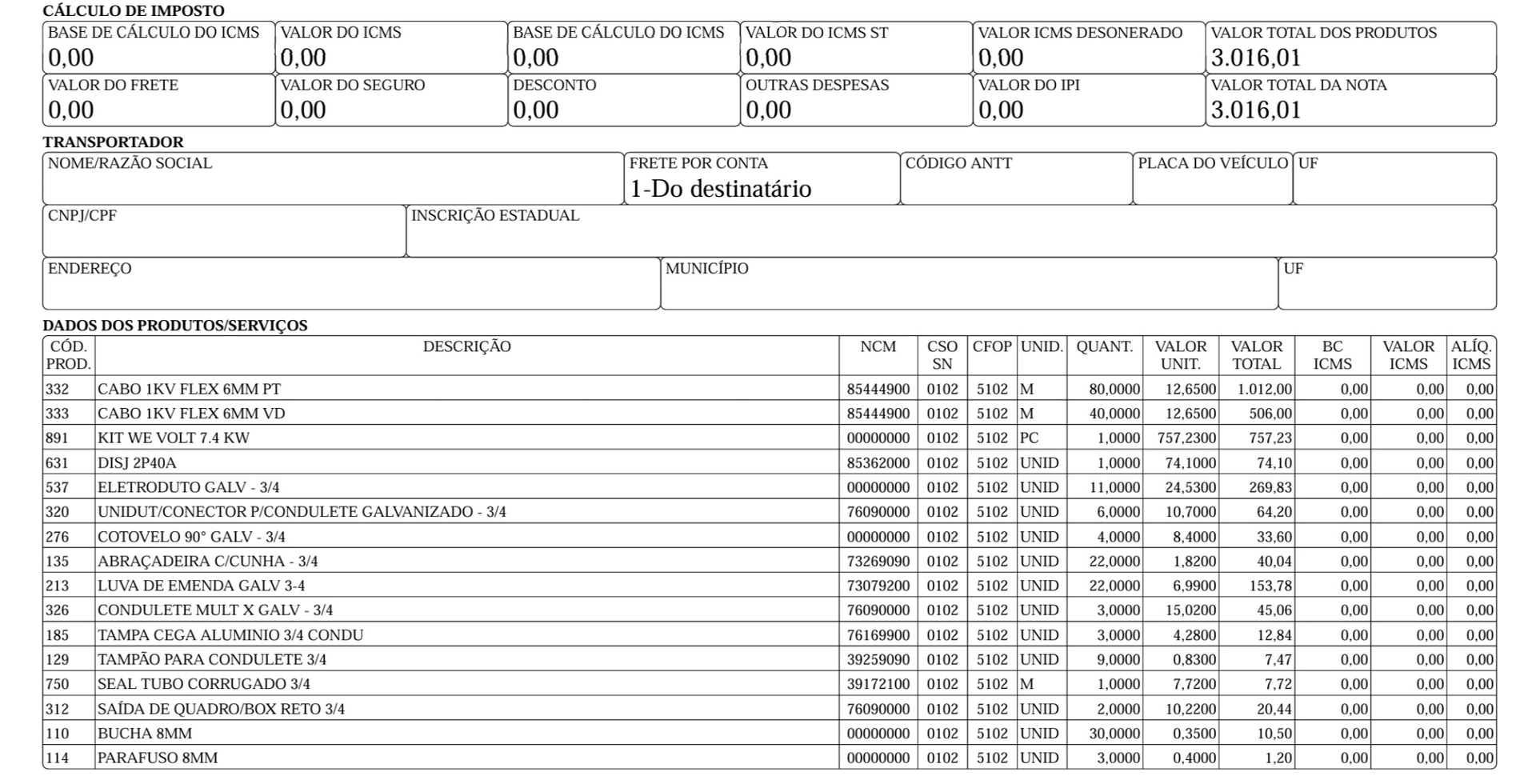 Posta o detalhamento do orçamento. Materiais, serviços, etc.