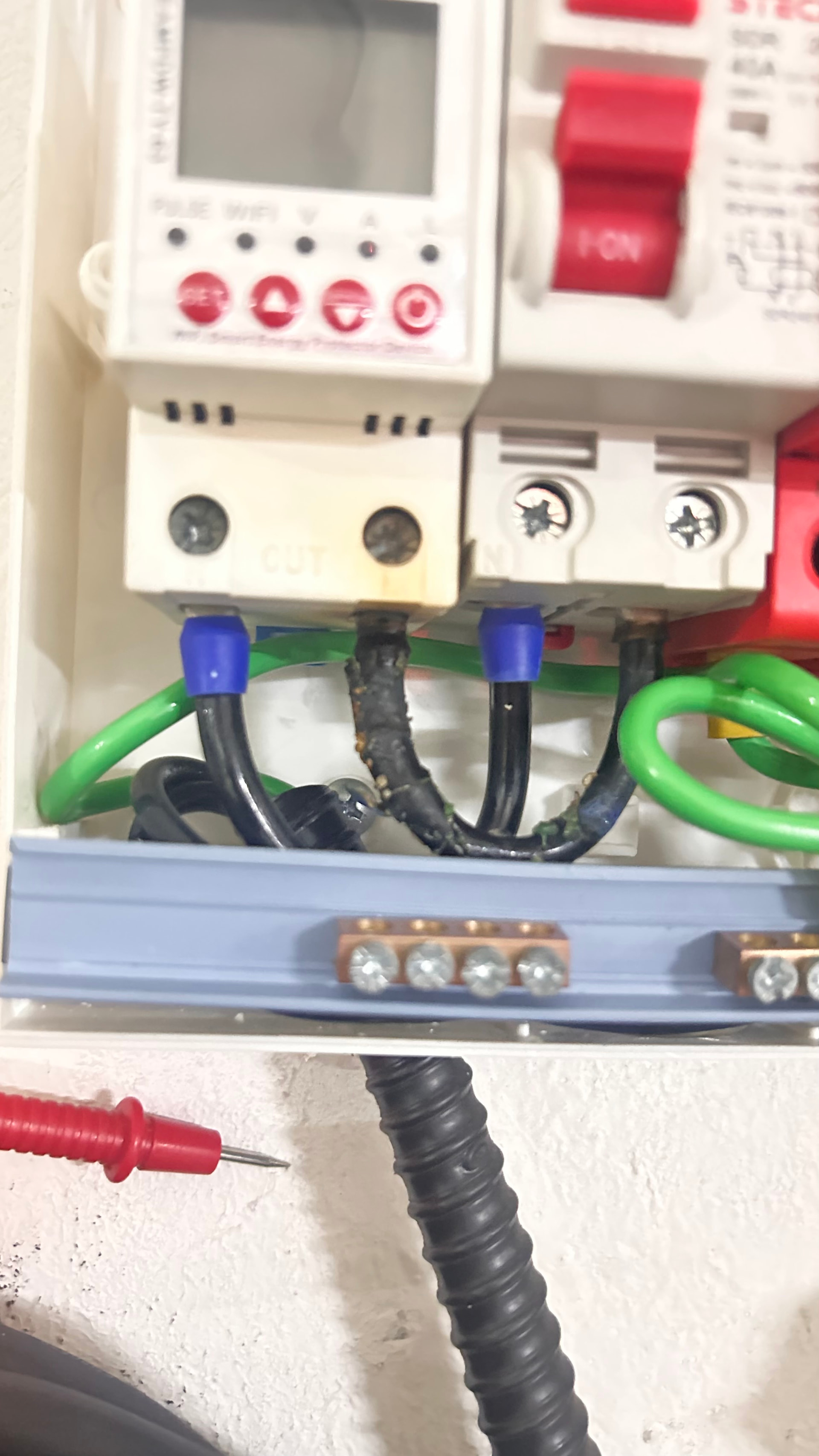 Mas não houve desarme. O isolante do condutor derreteu até o ponto de pifar o medidor.