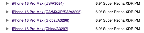 O GSM Arena, que é uma fonte confiável, está fora do ar mas, para ilustrar isso, um iPhone 16 Pro Max tem 4 variantes, e podem haver diferenças entre elas (bandeja do chip, por exemplo, não existe na versão US e tem 2 na versão CN).