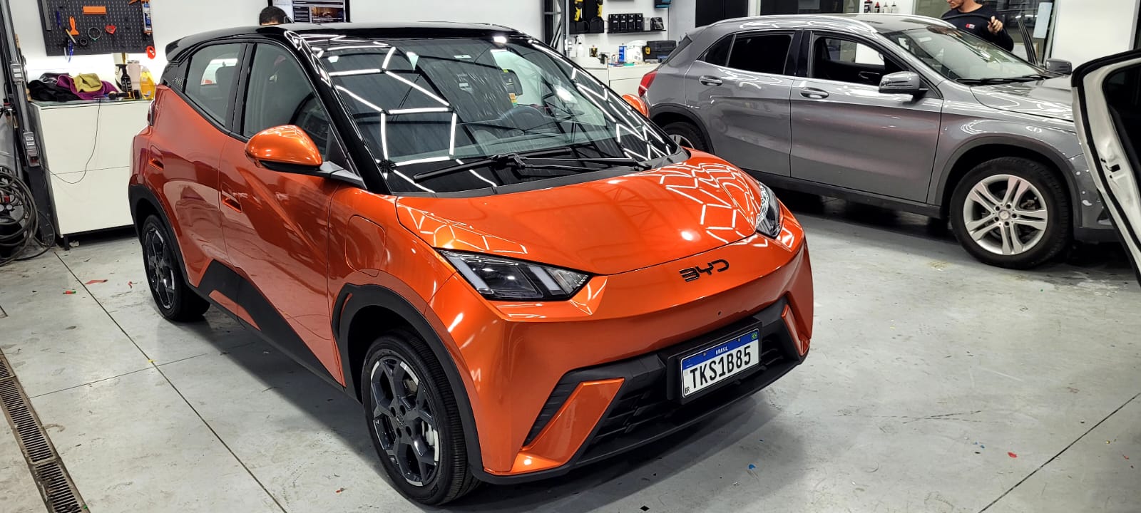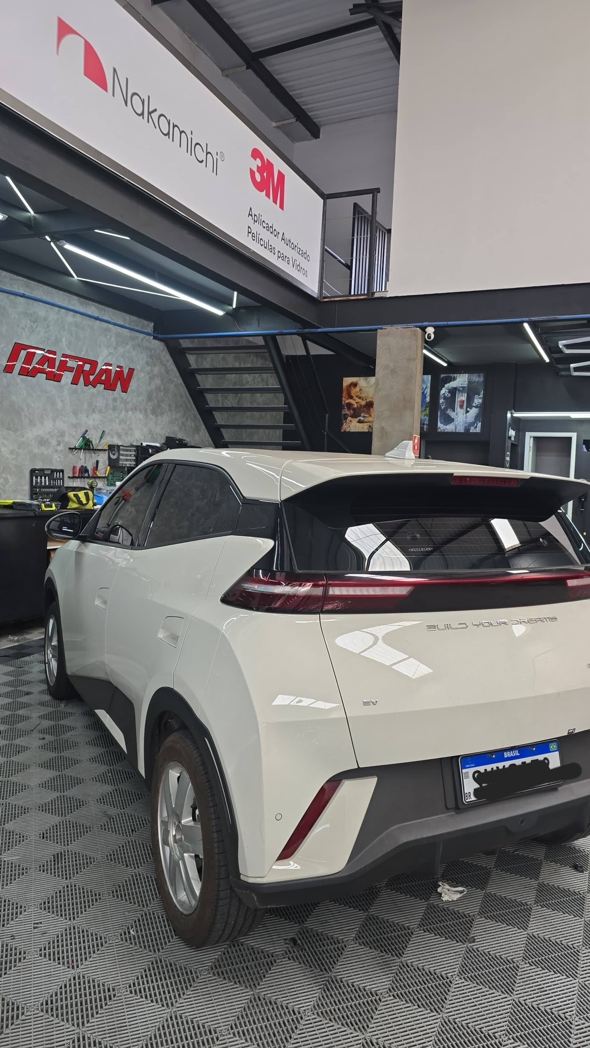 Instalação de Insuflm nos vidros laterais e no parabrisa.