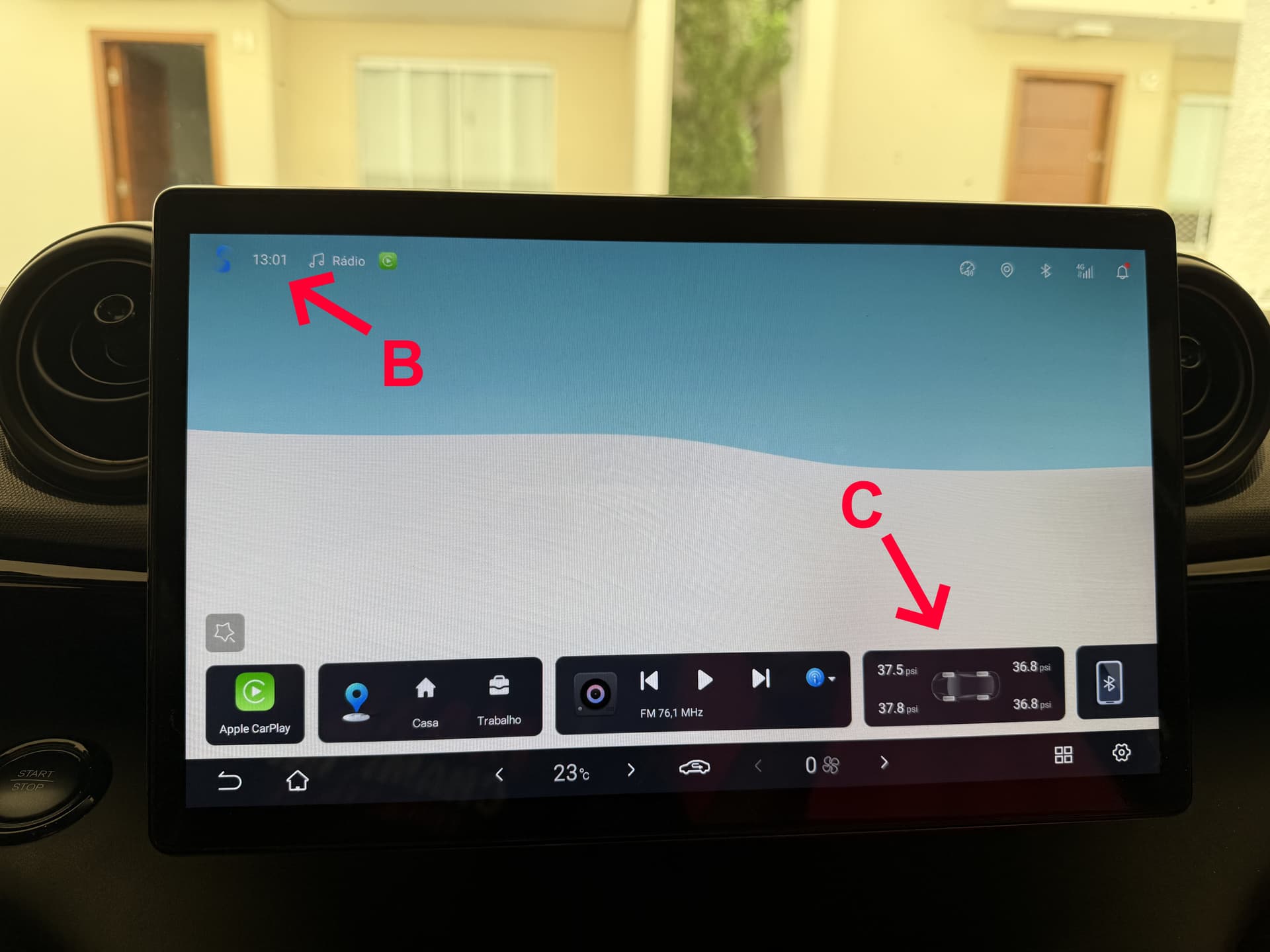 Então fica a pergunta: existe algum planejamento para voltar a mostrar a qualidade do ar na Multimedia? Poderia ser por exemplo um Widget como o que mostra a pressão dos pneus (C).