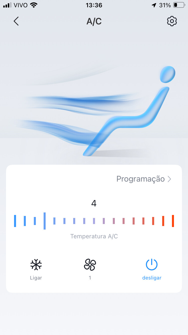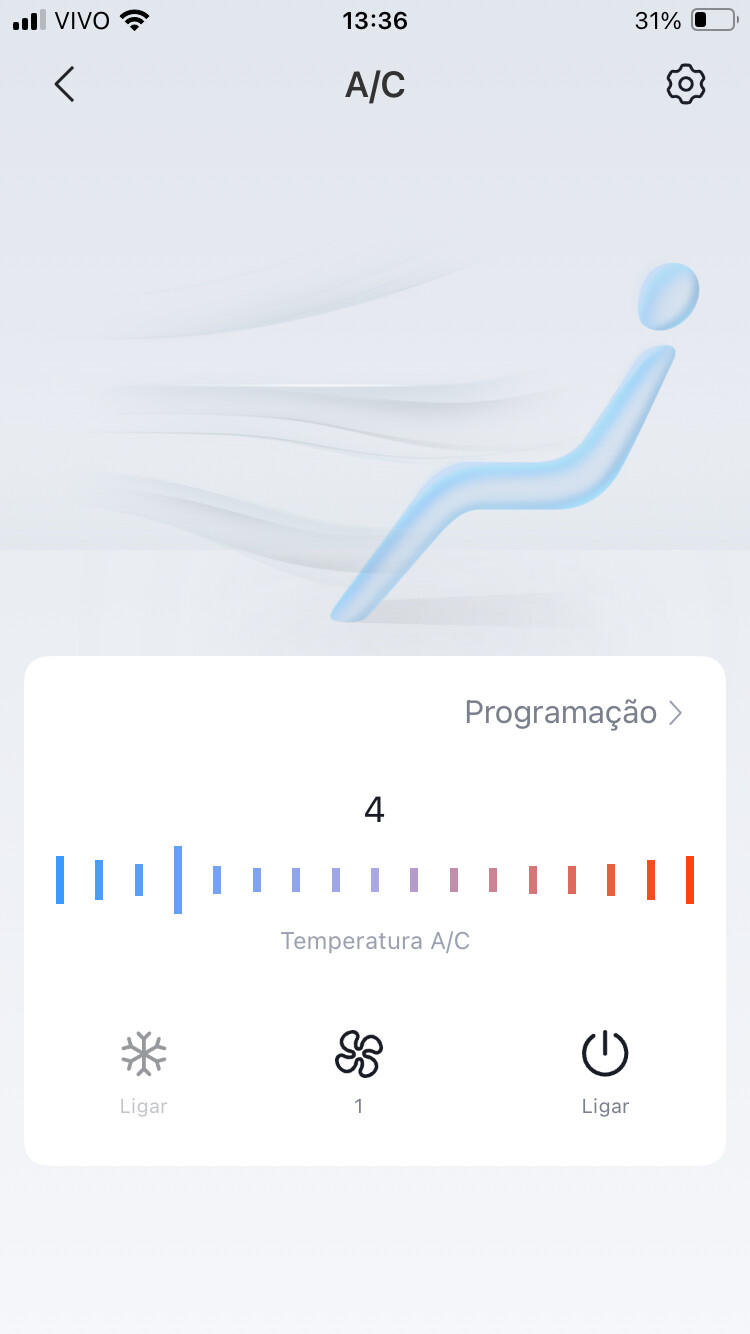 Em relação ao ajuste do ar-condicionado, é mais uma questão estética, e, já que no app existe a imagem das três saídas de ar, seria interessante poder utilizá-las de fato, e não apenas como um recurso visual.