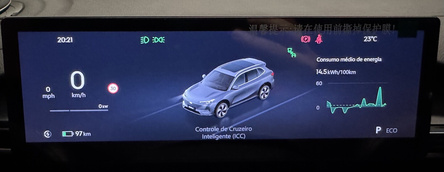 Na direita ele mostra o consumo dos últimos 100 km… e na esquerda o consumo instantâneo igual BYD.