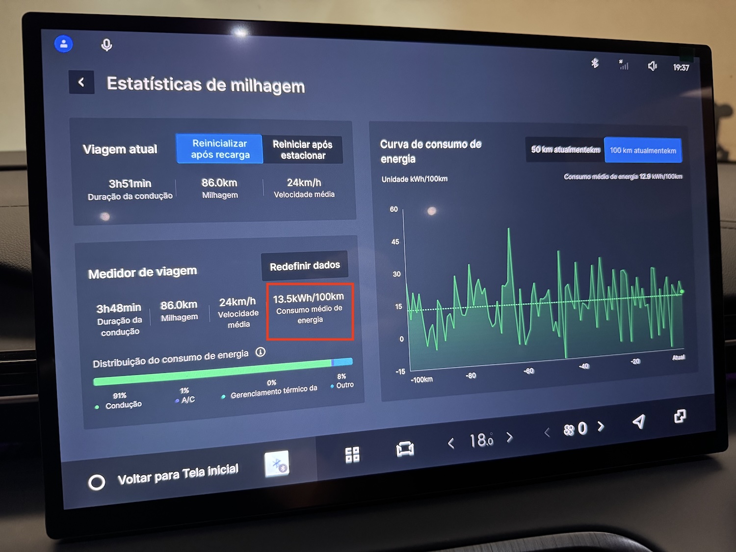 Pegando o ponto que você falou que não consegue fazer média de 13.5kwh/100km, porque me lembrou do resumo de deslocamento desse fim de semana.